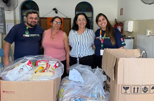 A Unimed Ribeirão Preto realizou, no dia 23 de dezembro, a entrega de alimentos arrecadados por meio de uma ação social interna promovida durante a confraternização anual da cooperativa. Os colaboradores foram convidados a contribuir com a doação de alimentos não perecíveis, transformando o encontro em uma mobilização coletiva em prol de instituições sociais da região. Todo o volume arrecadado foi destinado ao Lar dos Velhos, em Ribeirão Preto; ao Instituto Crescer Cidadão, também em Ribeirão Preto; e ao Lar Escola Espírita Eurípides Barsanulfo, em Sertãozinho.