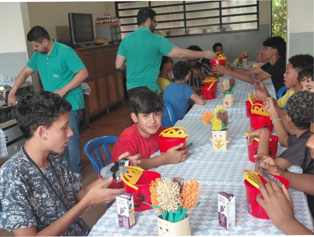 Já no Lar Escola Redenção, a Unimed promoveu uma atividade solidária com cerca de 60 crianças atendidas pelo Projeto Félix, iniciativa da Federação das Unimeds do Estado de São Paulo (FESP) voltada à inclusão digital de crianças e adolescentes com pouco acesso à tecnologia. Na ocasião, a equipe da Unimed levou lanches do McDia Feliz e participou de momentos de confraternização com os alunos.