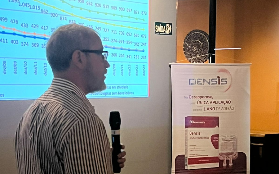 O palestrante convidado, dr. Ramiro T. Hernandes, ginecologista e consultor de gestão de saúde de Ribeirão Preto, ministrou uma palestra sobre as melhores práticas de rastreio, prevenção e tratamento da osteoporose.