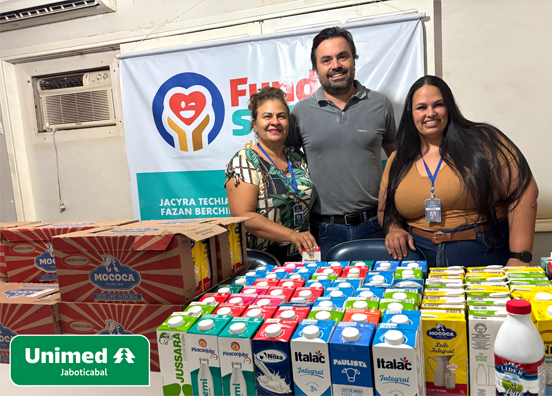A Unimed Jaboticabal reforçou seu compromisso com a responsabilidade social ao realizar a doação de 205 litros de leite longa vida ao Fundo Social de Solidariedade de Jaboticabal. A arrecadação foi feita durante o Workshop de Saúde Ocupacional promovido pela cooperativa, transformando o evento em valiosa ação comunitária.